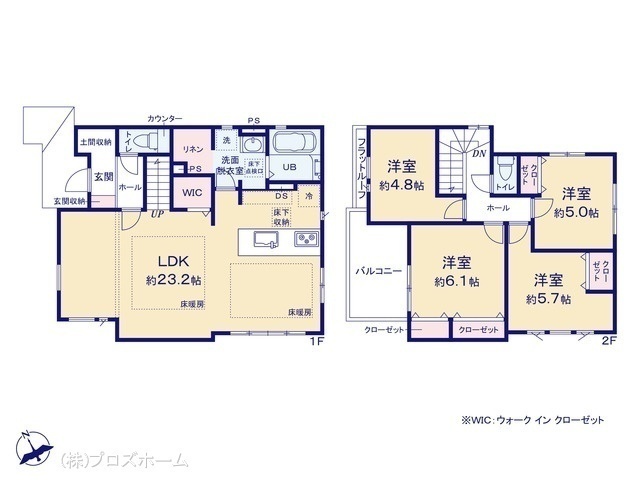 - 間取り表示のSはサービスルーム(納戸)の略称です。WICはウォークインクローゼット、DENは書斎の略称です。