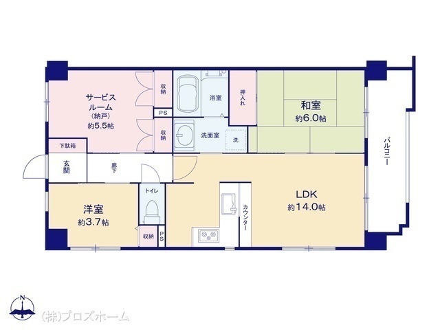 | 間取り | 2LDK+S(納戸) |